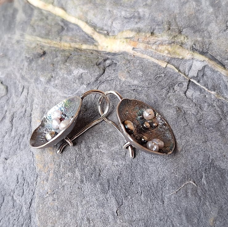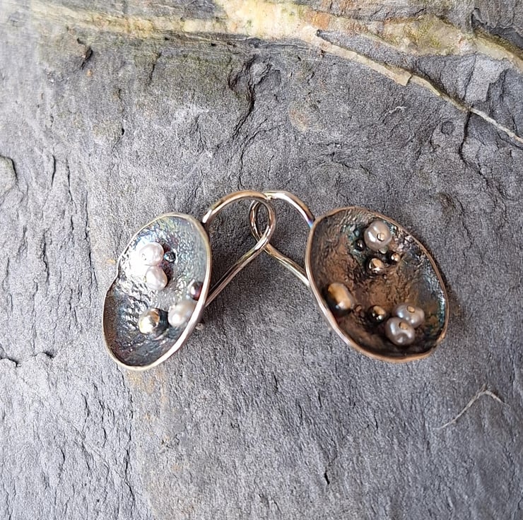 At the centre of each cradle-like dome, delicate freshwater pearls and silver balls nestle like precious new life, adding a touch of timeless elegance. The subtle shimmer of silver and the soft glow of pearls create a captivating contrast, perfect for both everyday wear and special occasions.