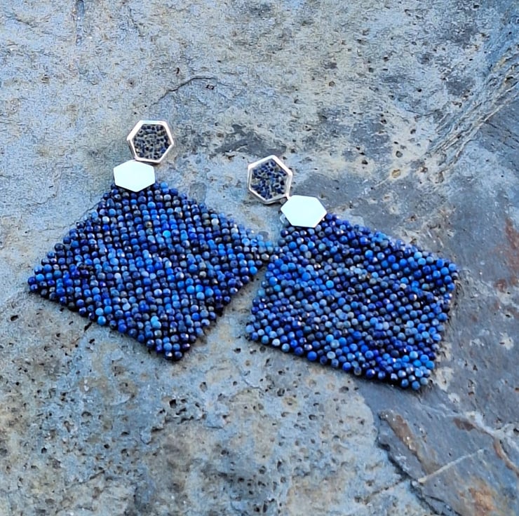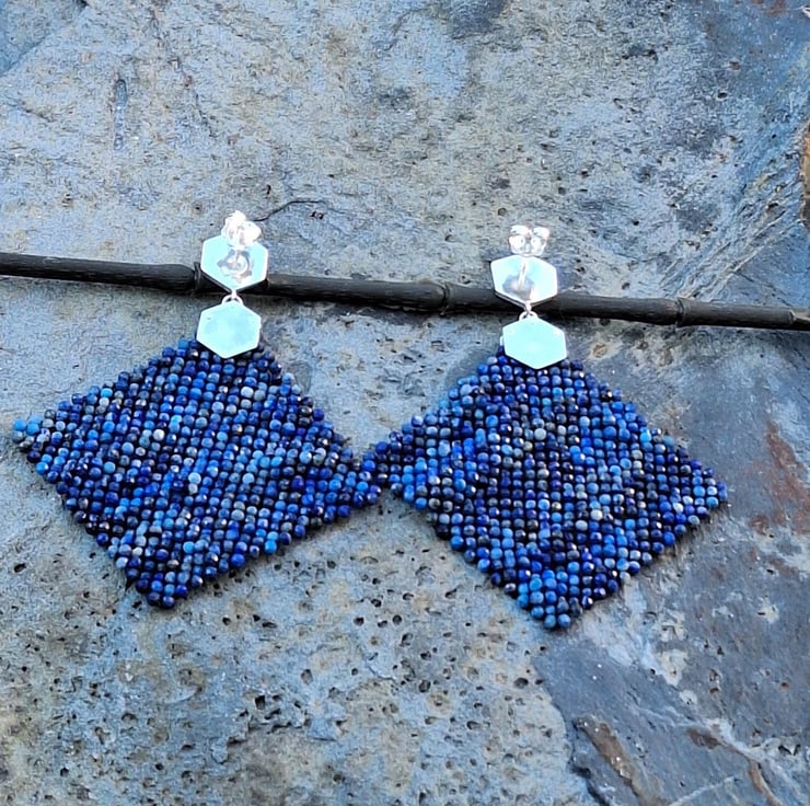 Handmade Lapis Lazuli Statement Earrings Sterling Silver Micro Mosaic