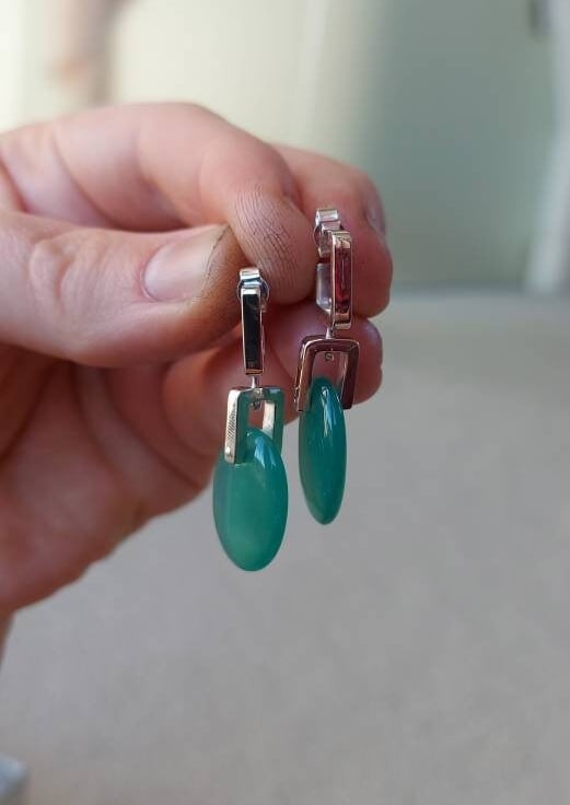 Lovely silver earrings for a special occasion or even every day. Green agate is fantastic and has very vibrant colour. If you love green - than these earrings are for you!