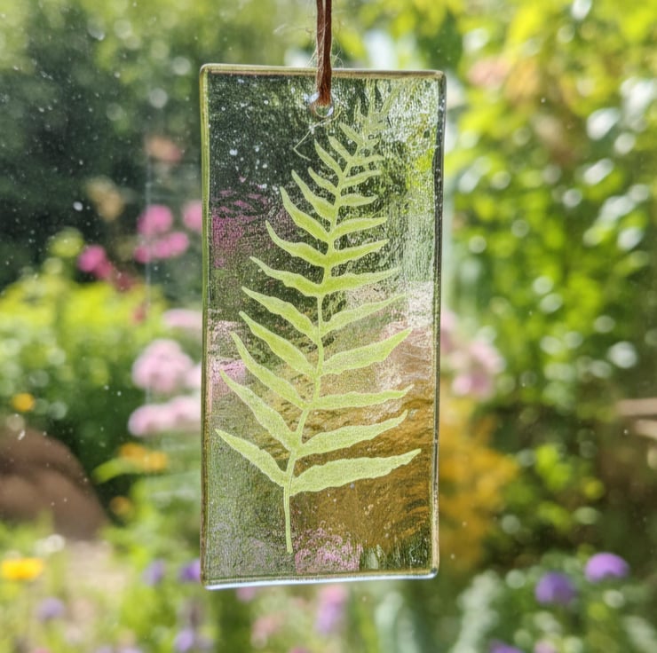Pretty fused glass Christmas decorations, handmade painted with glass powder on the transparent glass