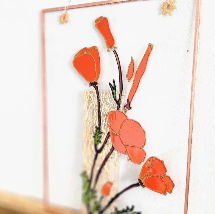 Floral Suncatcher: Framed Stained Glass Window Hanging