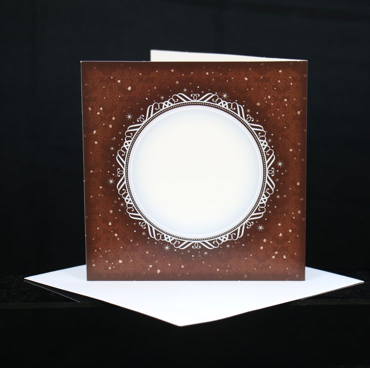The topper is viewed through the aperture of the gold foiled 350gsm card.