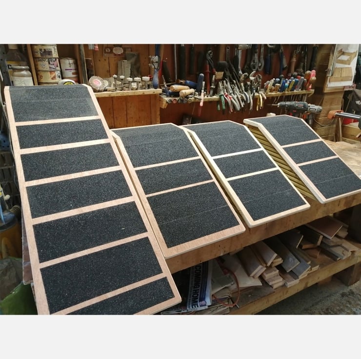 This ramp shown is 16cms H x 40cms wide, but all sizes made to suit your situation.