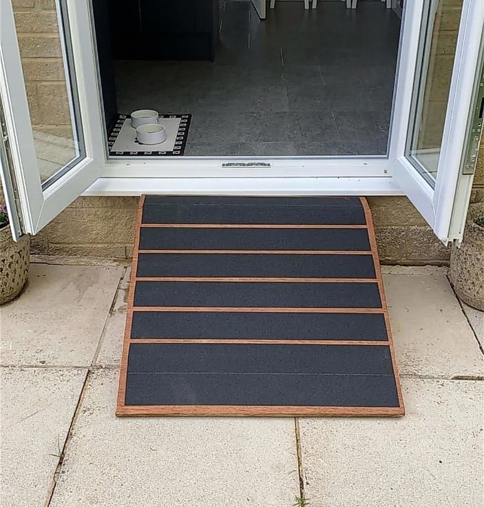 The ramp is stable in use and has an extended top platform to span over the threshold step, all widths made.
