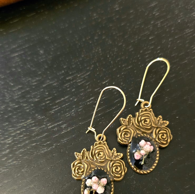 These nature-inspired earrings are created by embedding real dried flowers in crystal-clear resin, preserving their delicate beauty forever.