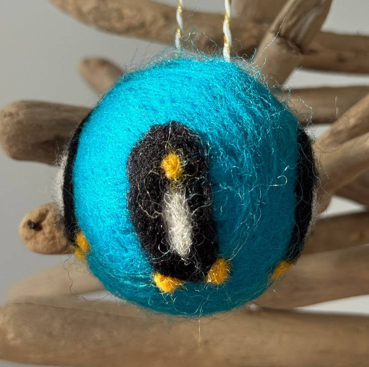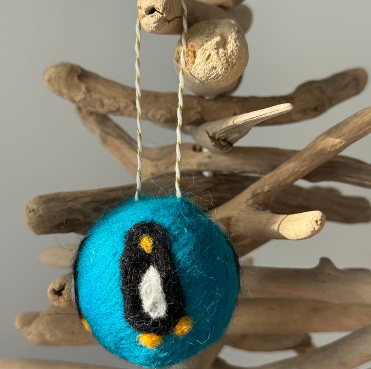 A cute pair of penguin Christmas baubles which have been hand felted by me.