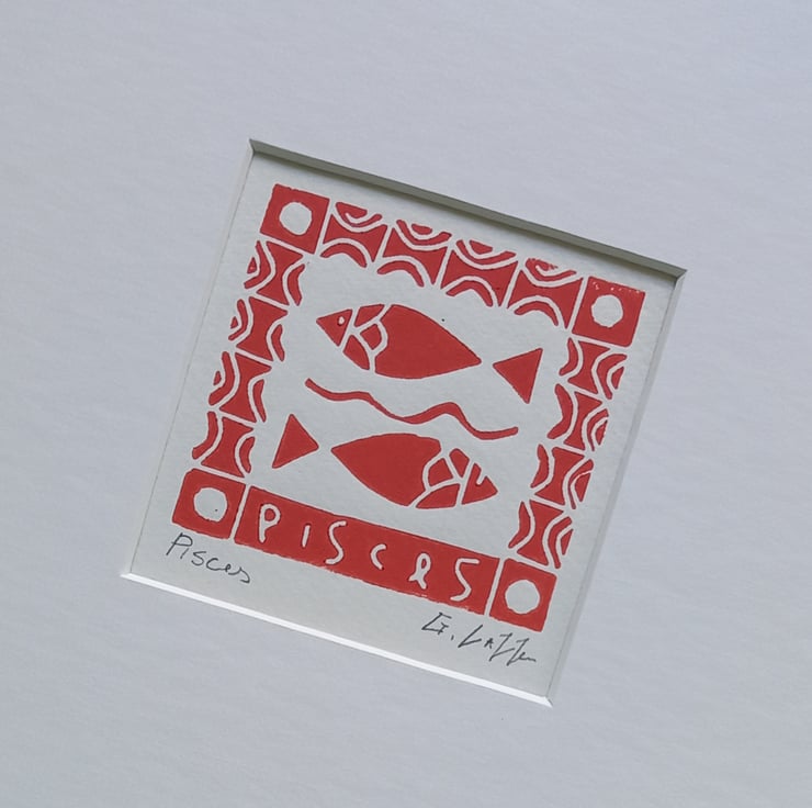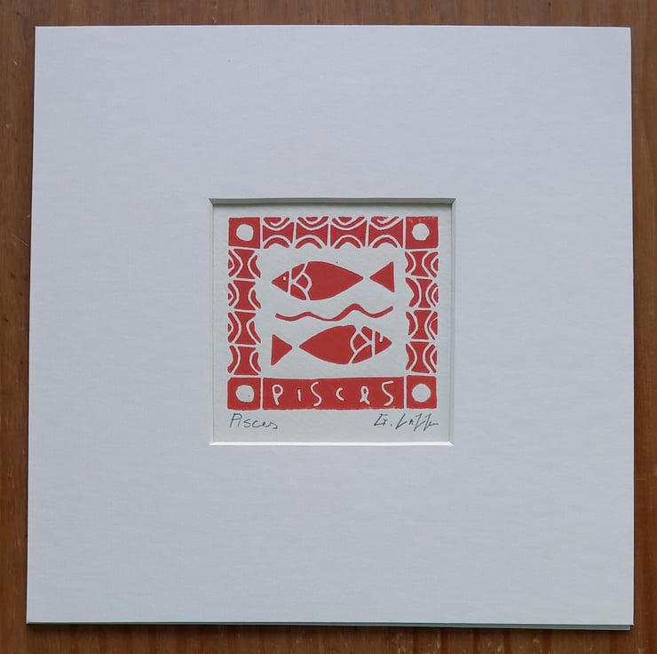 "Pisces" is an Original Mini Lino Cut Print (NOT a digitally reproduced print).