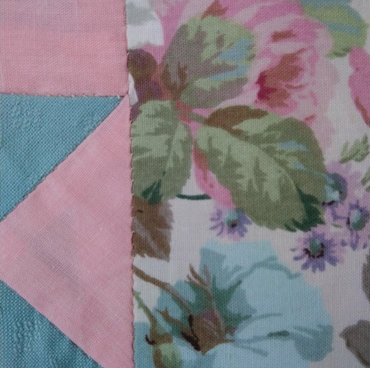 Patchwork is all hand stitched. Lining and backing sewn with sewing machine.