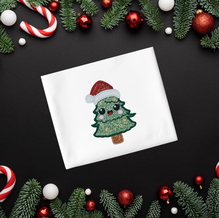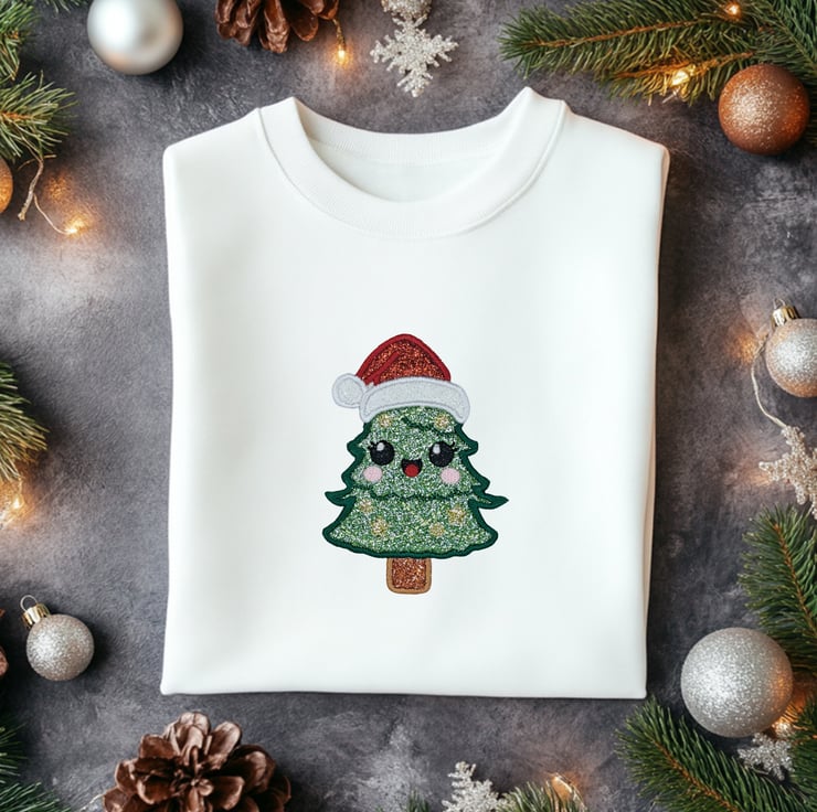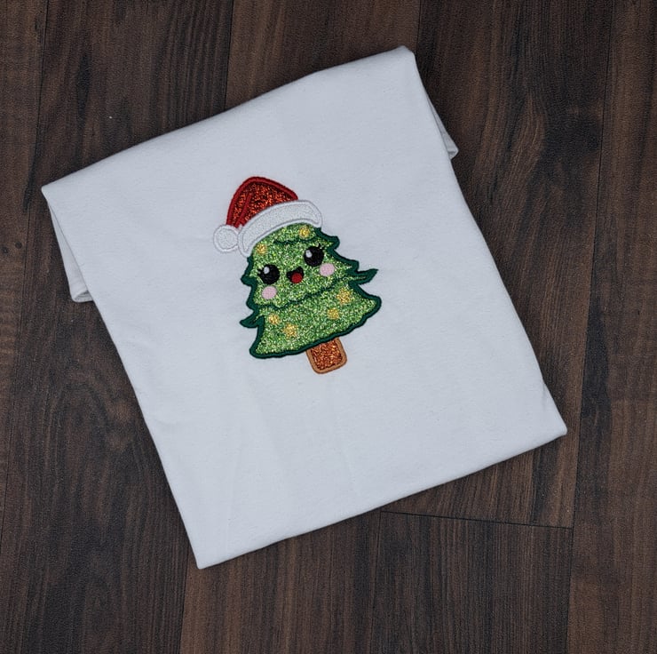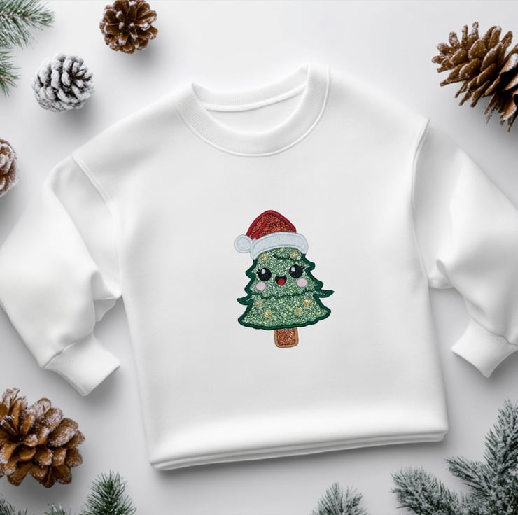 A cute and festive embroidered christmas tree with sparkly glitter vinyl appliqué, perfect for children’s Christmas jumpers, hoodies and t-shirts. Handmade using high-quality stitching for a durable, cosy, and magical holiday outfit. Ideal for festive photos, school Christmas days or as a thoughtful handmade gift.