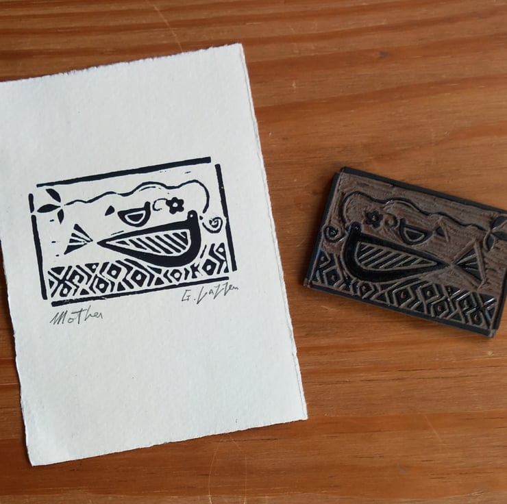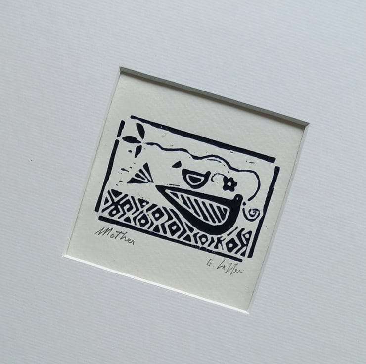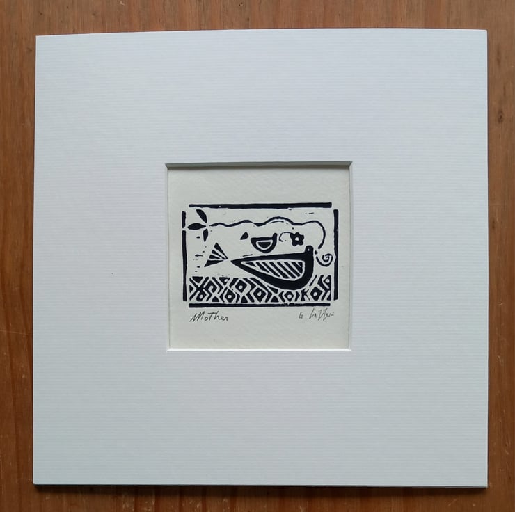 "Mother" is an Original Mini Lino Cut Print Mounted (NOT a digitally reproduced print).
