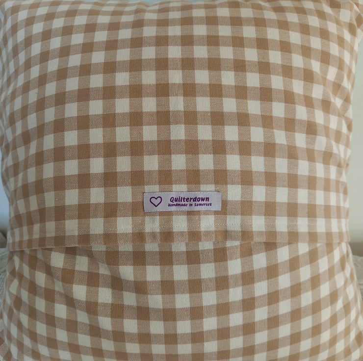 The back is made from a vintage beige & white checked fabric and has an envelope opening.