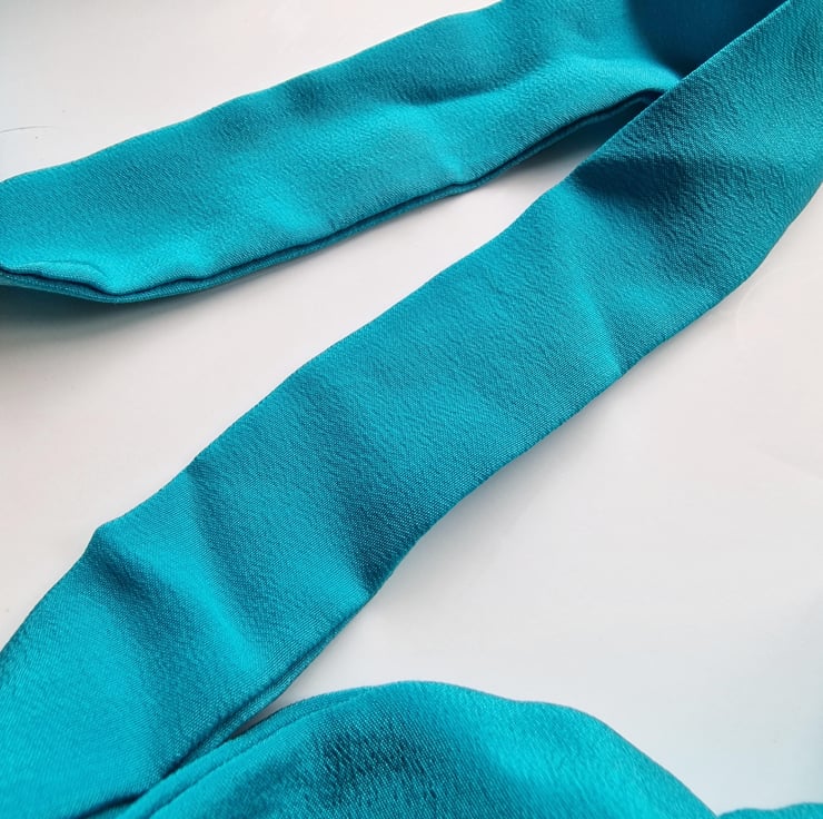 Wear it as a neck tie, a hair ribbon or headband, wrap it around a ponytail, or knot it onto a favourite bag for a soft pop of colour. Its light, silky feel makes it an easy choice for both everyday styling and more dressed-up looks. You can even loop it through a belt or tie it around a belt loop to add a playful flourish.