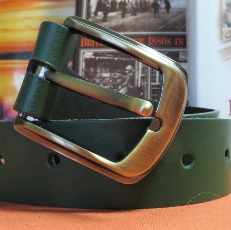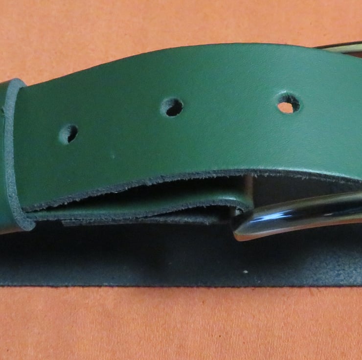 For anyone who loves the colour green I have this genuine green leather belt at 1.5" width it looks great with jeans. In a small size it fits waist size 27-32 inch. By now and make it yours today.