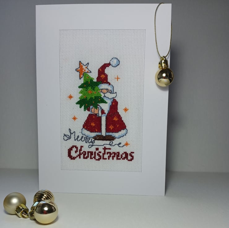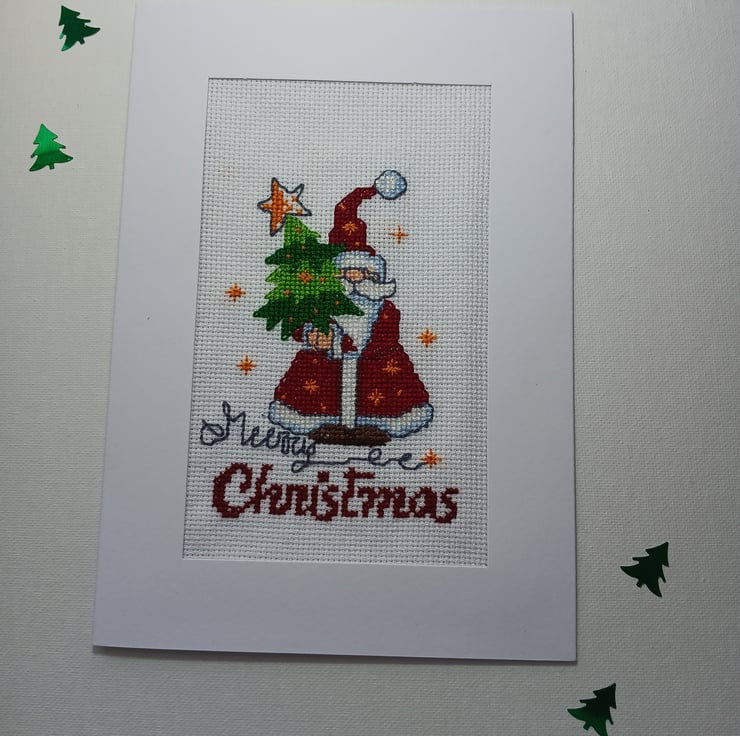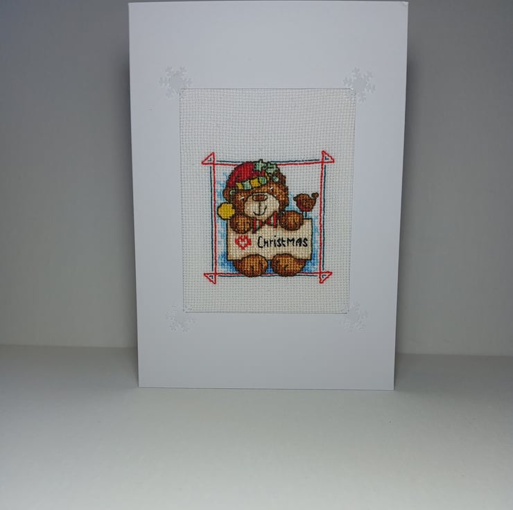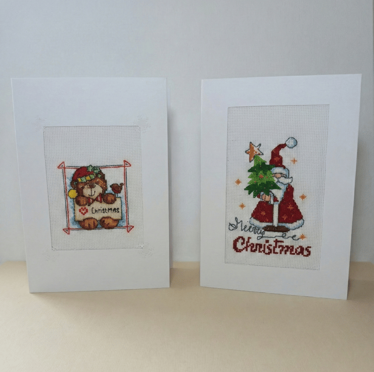 Handmade Cross Stitch Christmas Cards – Bear & Santa Designs, Festive Keepsakes