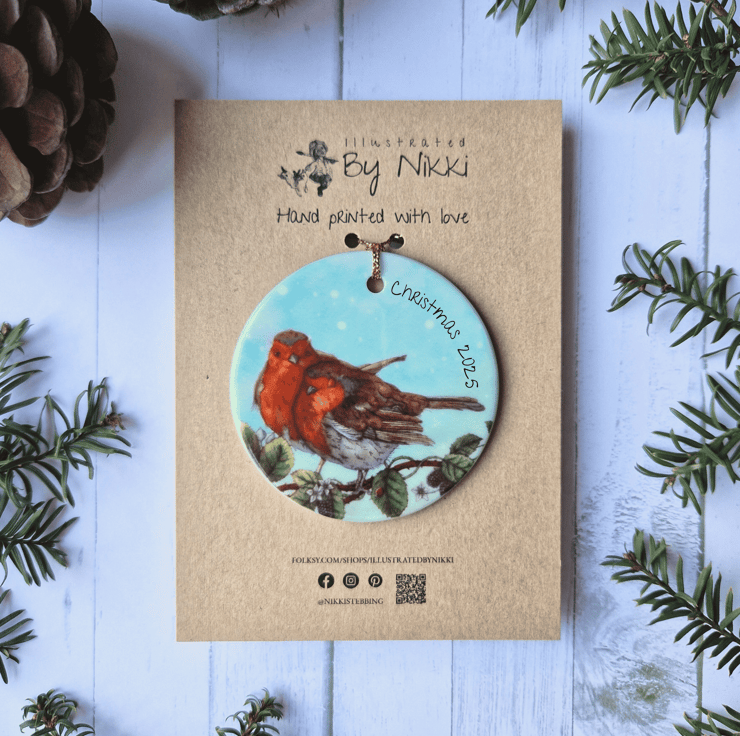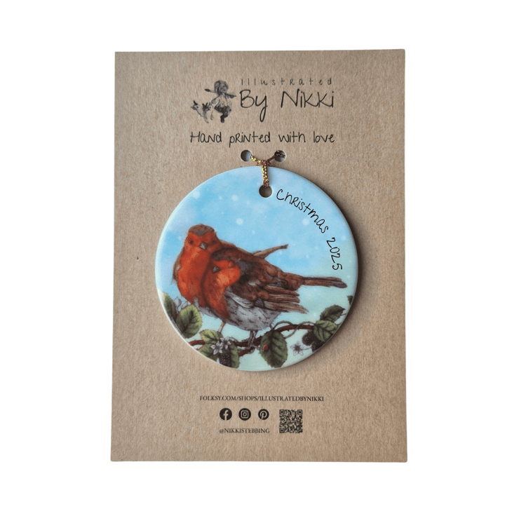 Together they became the heart of my Winter is Warmer with Love collection — a celebration of memory, companionship, and the gentle magic robins carry in British folklore. With illustration on one side and sentiment on the other, this ornament is more than decoration; it’s a keepsake that holds love through the winter season, year after year.