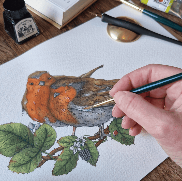 Add a touch of robin magic to your festive season with this glossy ceramic ornament, lovingly printed by me in Norfolk. One side features a high-quality print of my original ink and watercolour illustration of John & Barbara Robin, while the reverse carries the heartfelt sentiment: “Winter is Warmer with Love.”