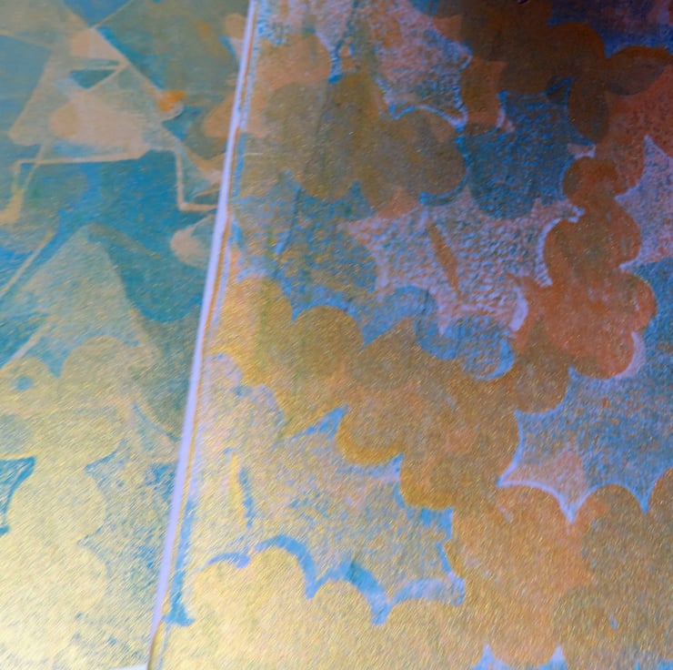 Gelli Printing: A form of monoprinting making one-off prints using flexible gel plates, acrylic paint and texture. No press is required and it creates beautifully layered prints filled with colour and pattern.