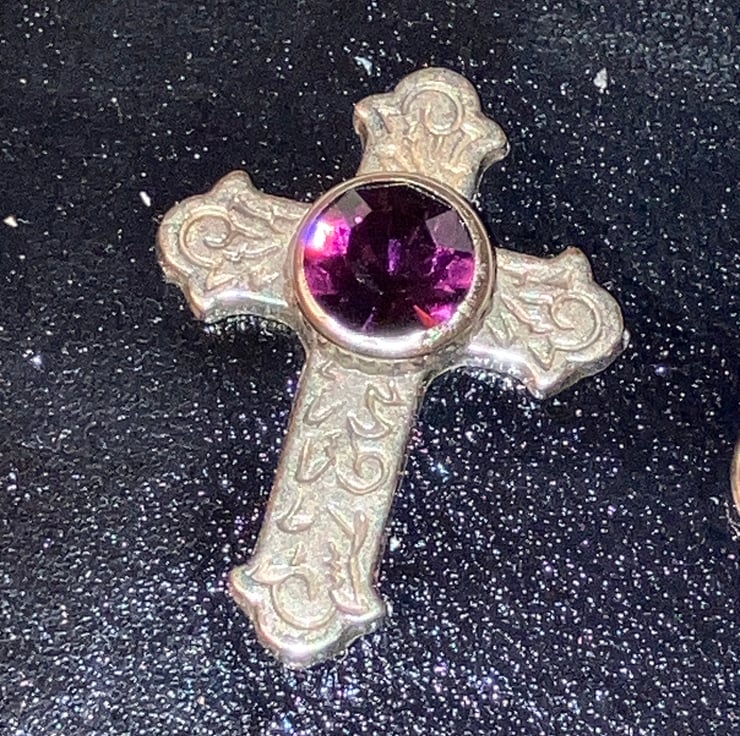 Black Leather Hair Stick Barrette with Catholic Cross centre with 3 Amethyst Gems