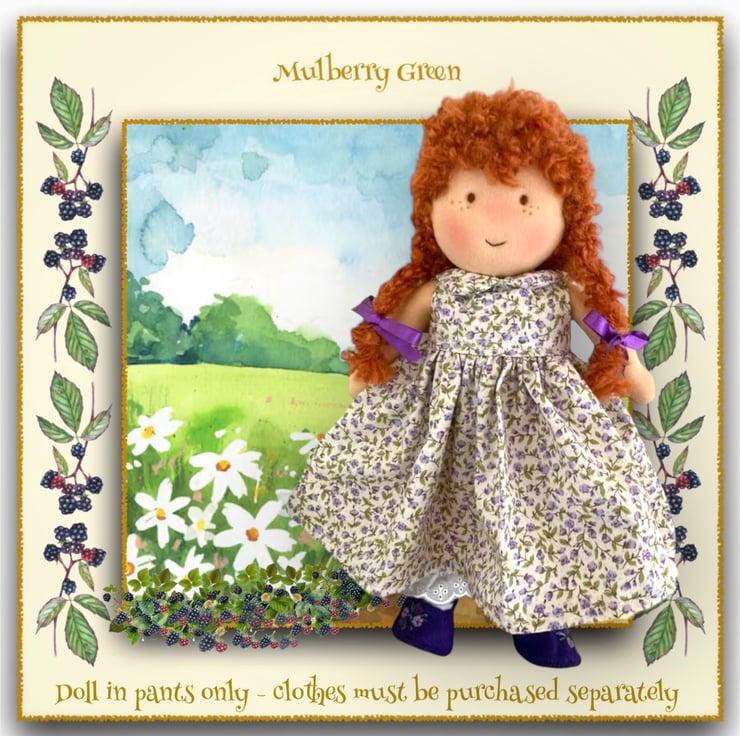 Mulberry Green is all about a time, now gone, but not so very long ago, when children had a great deal of freedom to explore their surroundings and use their imagination in play. A time when the world moved at a slower pace and things were made to last. To celebrate this heritage, wherever possible, I use traditional crafts and materials to create my dolls and outfits.