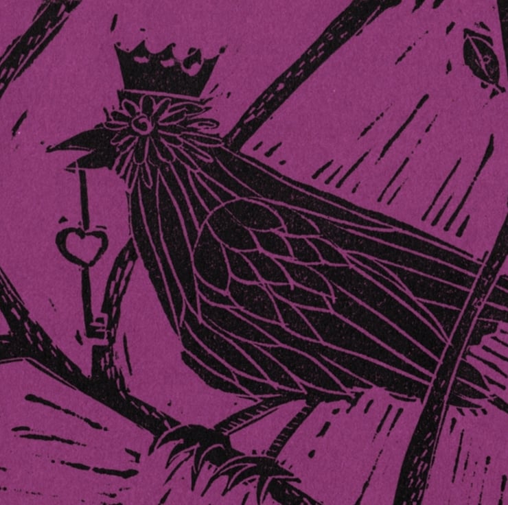 Key to your Heart - Lino printed in black on cerise pink backbround