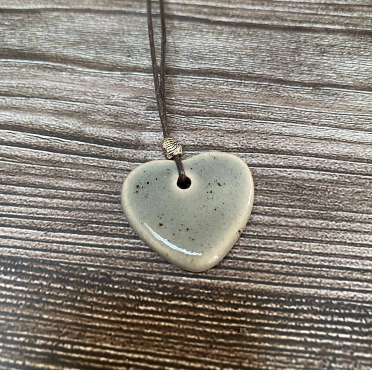 This ceramic pendant has been made using creamy stoneware clay with speckled grey coloured glaze.