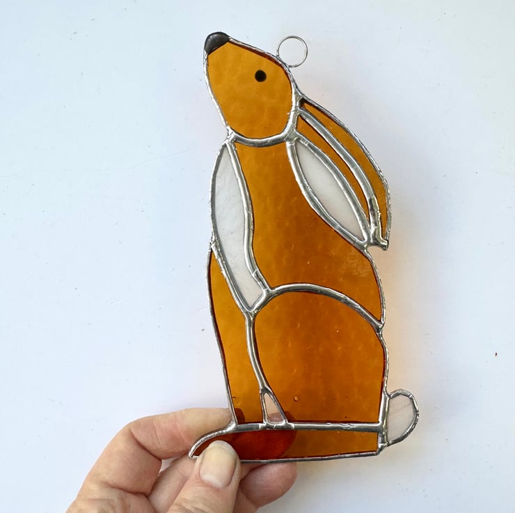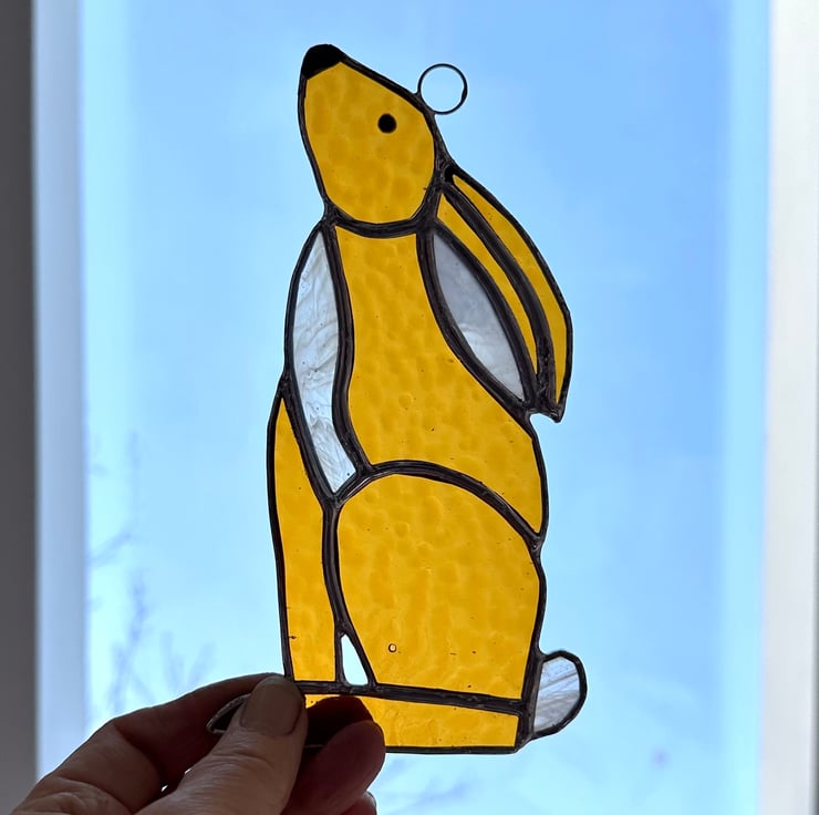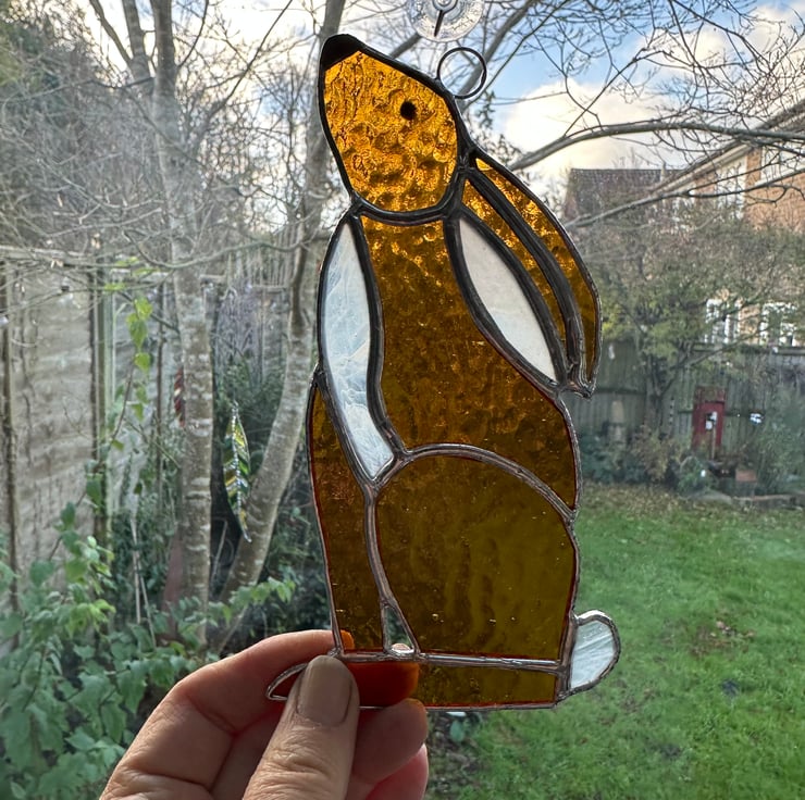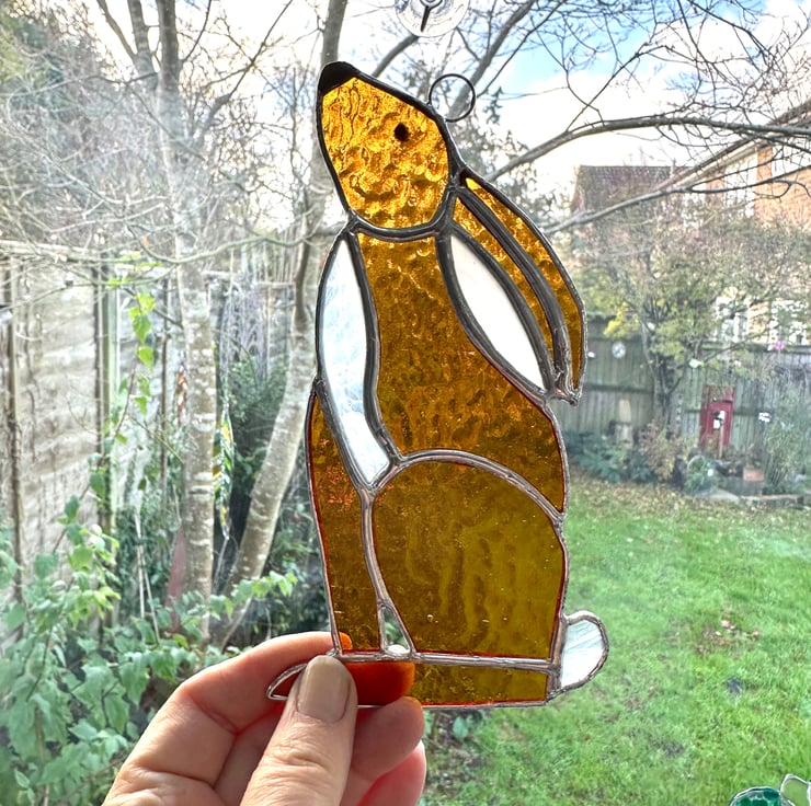 Hare suncatcher made in beautiful stained glass by Carole’s Glass.