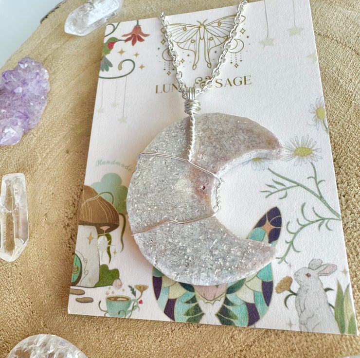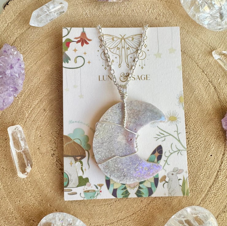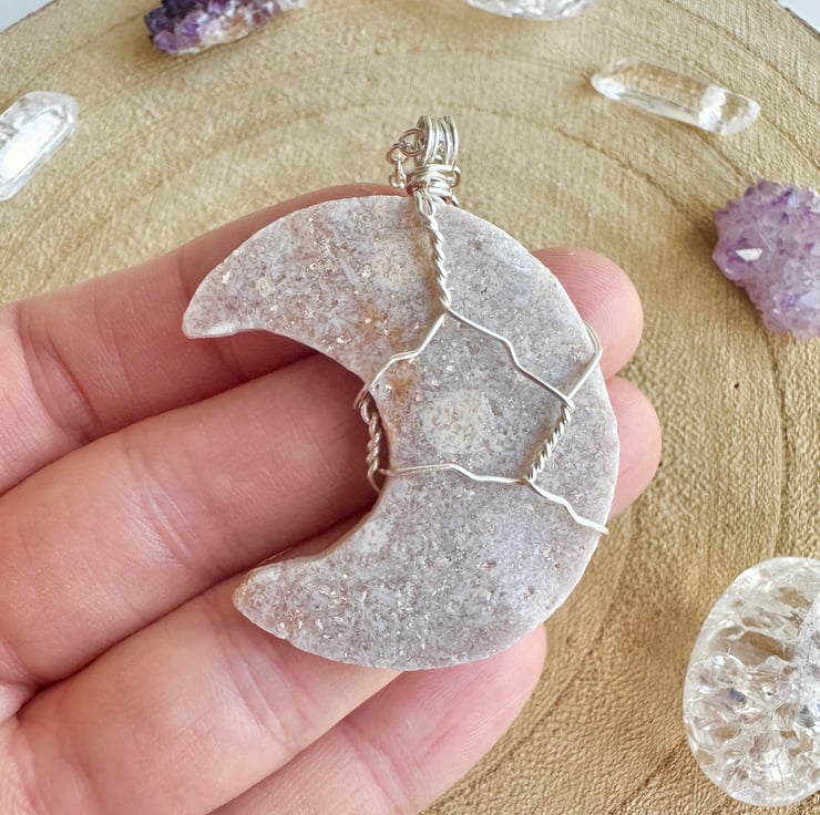 Angel Aura Pink Amethyst Moon Crystal Necklace,Sterling Silver, Moon lover gift