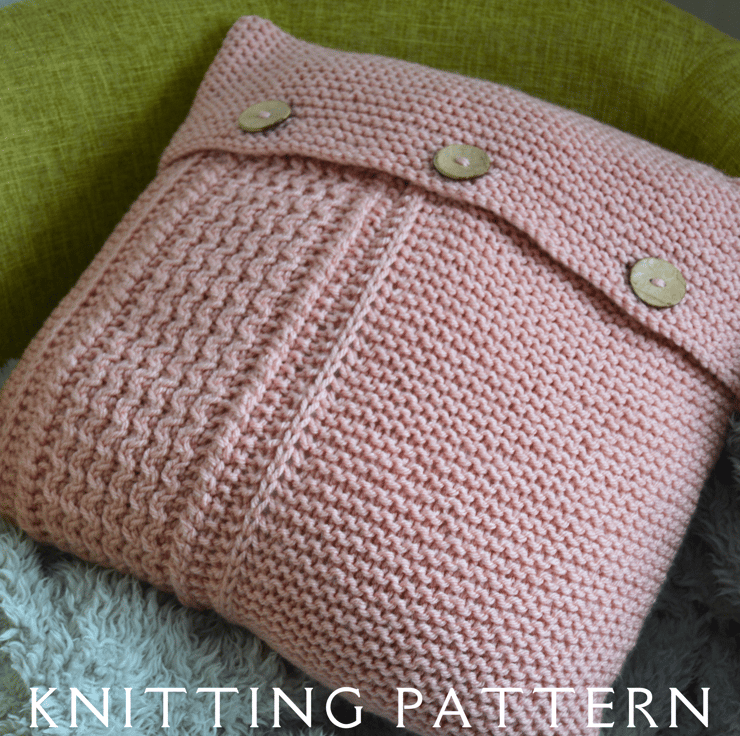 Design: A square removable envelope-style cushion cover with a cable pattern, finished with buttons.