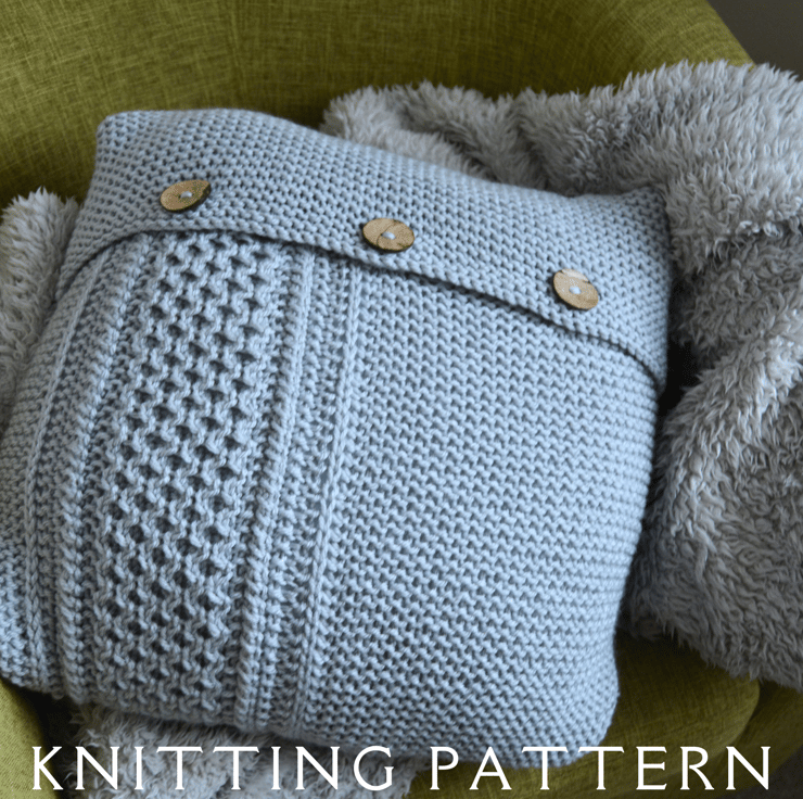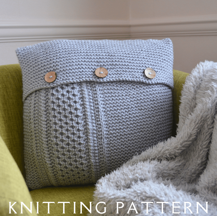 Design: A square removable envelope-style cushion cover with a cable pattern, finished with buttons.