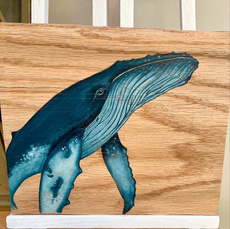Humpback whale acrylic painting on oak
