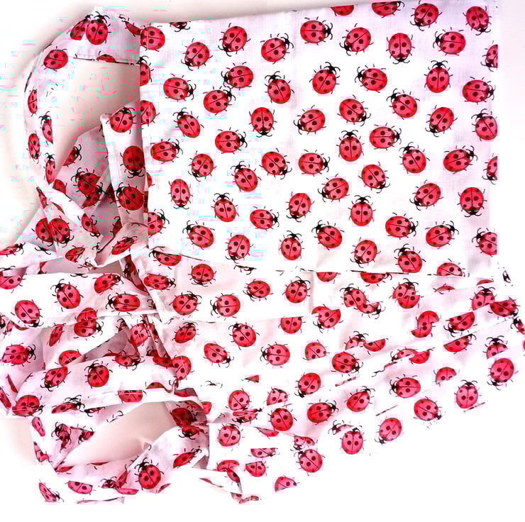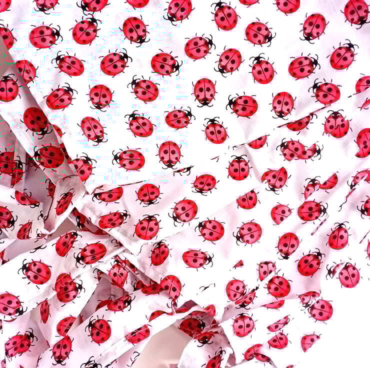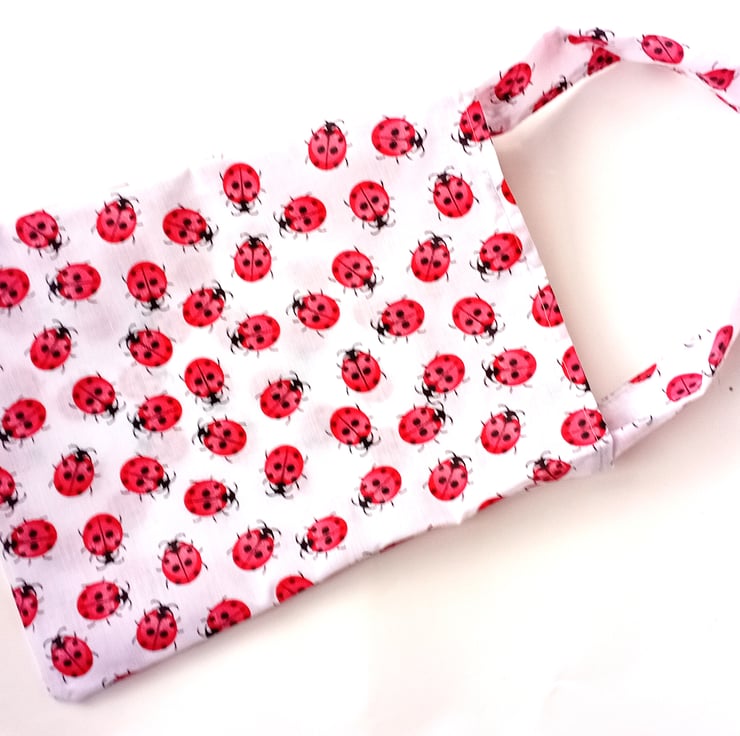 SMALL mini Tote style bags with novelty, children's theme featuring little Ladybirds or Lady bugs fabric design to be used as party gift bags or book bags for library or bedtime books.