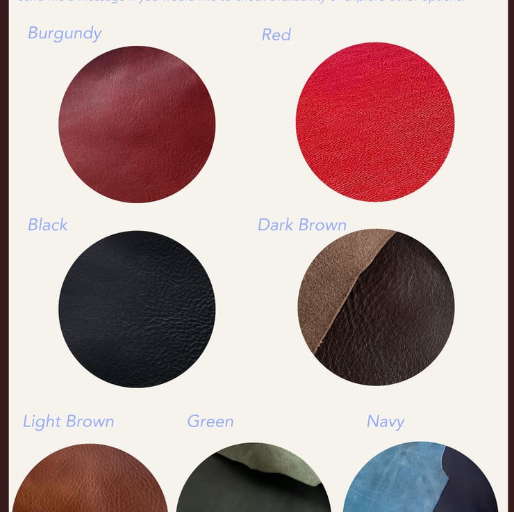 I also have additional leather & elastic available depending on current stock, so feel free to send me a message if you would like to check availability or explore other options :)
