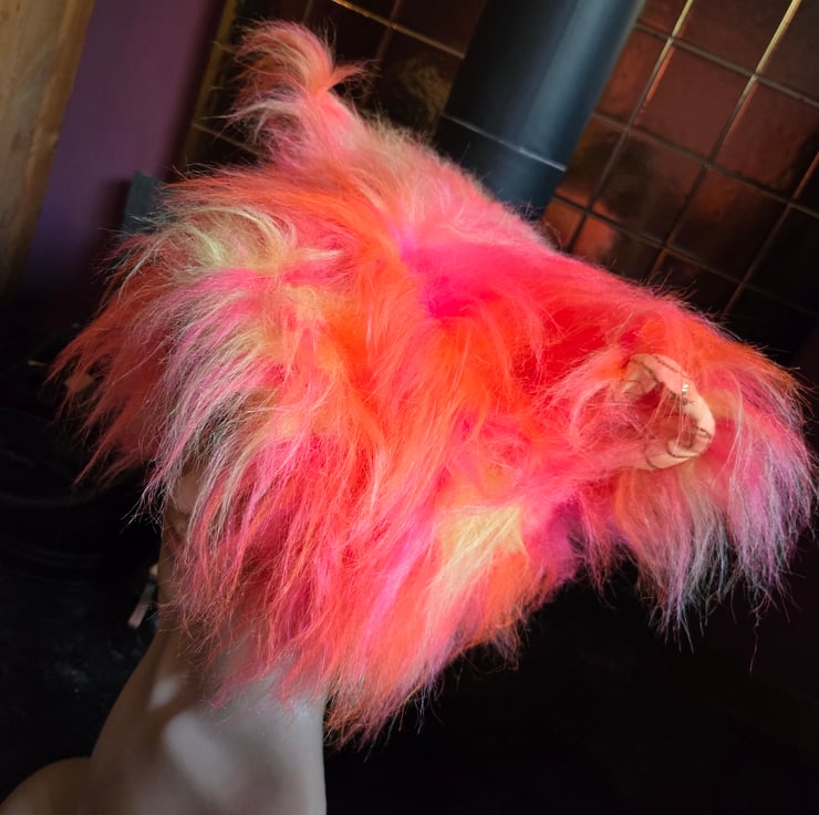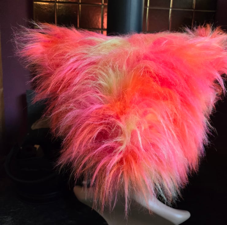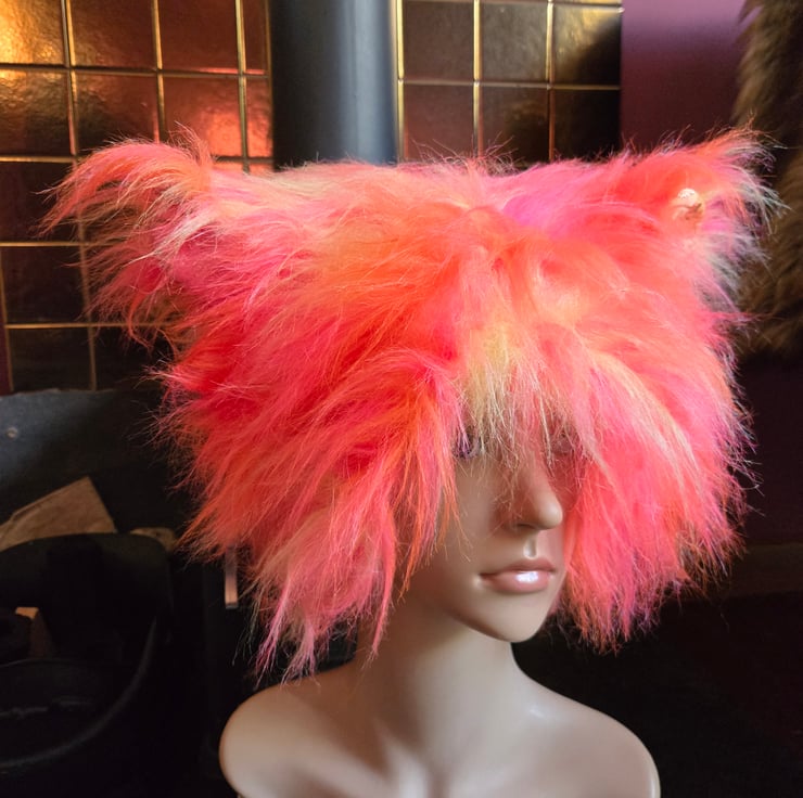 Psychedelic Rave Punk Shaggy Long Faux Fur Ears Hat Pink Yellow One of a Kind