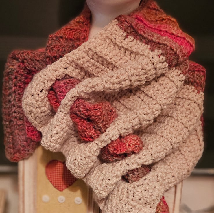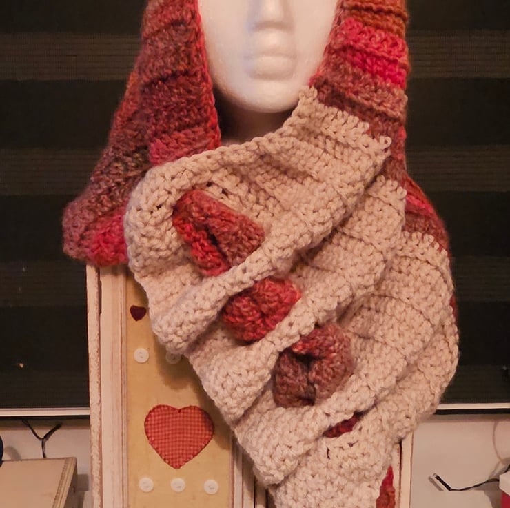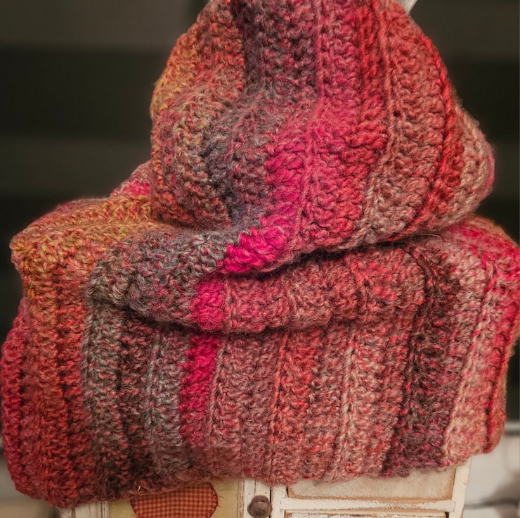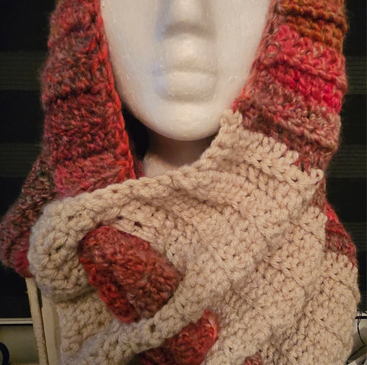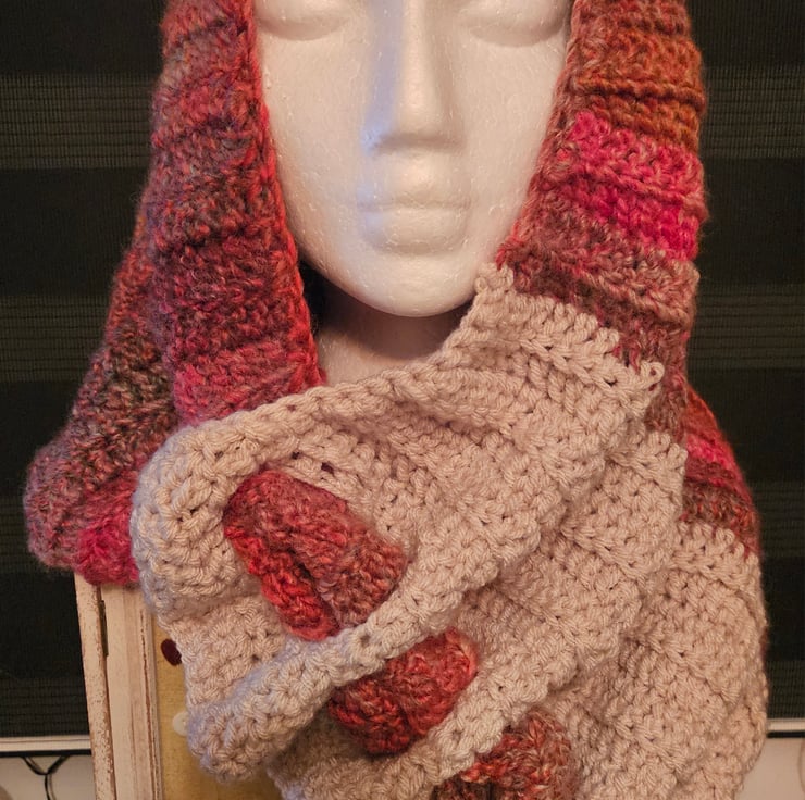 The keyhole scarf is multipurpose-it can be worn as a snood, a scarf or a shawl. Crocheted using chunky acrylic yarn. Guaranteed to keep you warm.