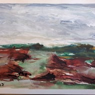 Inspired by colour and sunsets I painted this unusual image as a contrast between both light and dark, warm colours, and more abstract experiment.