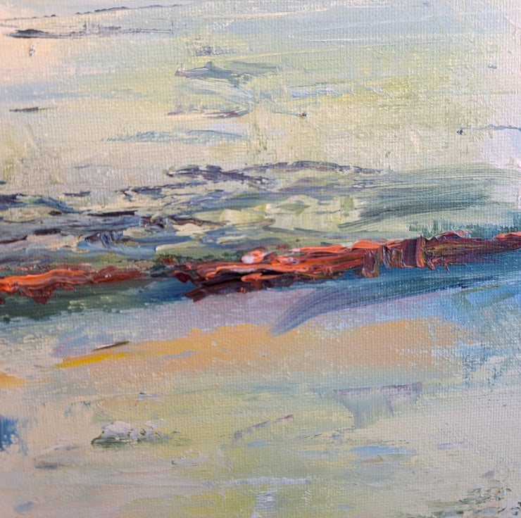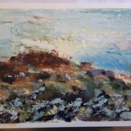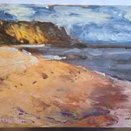 Inspired by the holidays I take in Cornwall and images of the sea. Painted in Oils on 3mm canvas panel. Composition tilted at slight angle.