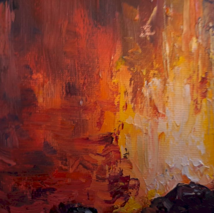 Inspired by images online of volcanos and lava I wanted to contrast the heat and warmth of the molten rock vs the cooler darker rocks of the land, the earth
