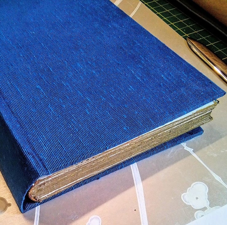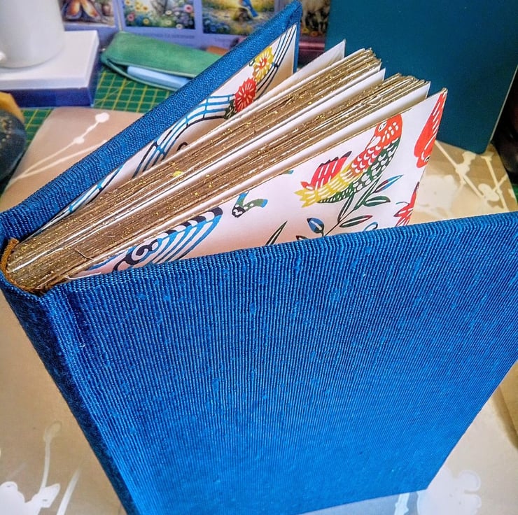 The cover is the most delicious Japanese Silk in a deep Kingfisher blue.