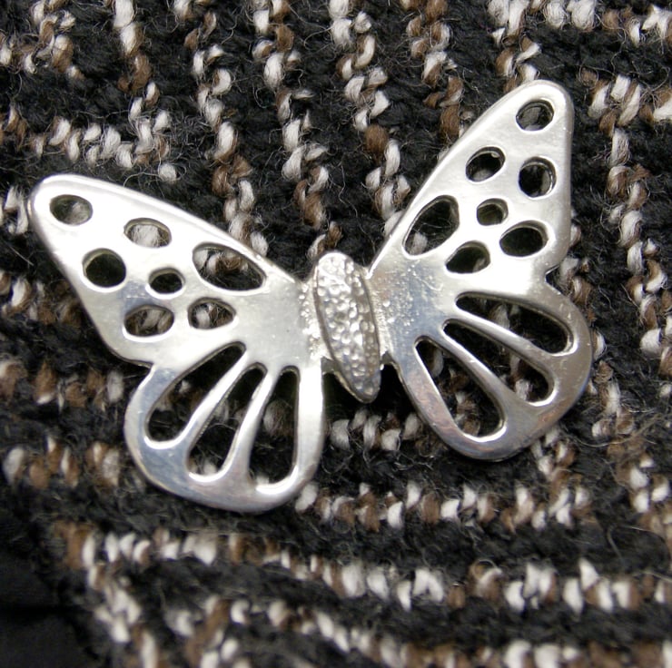 Hand polished pewter Butterfly brooch cast in Cornwall ( the home of pewter and tin ) finished in Scotland.