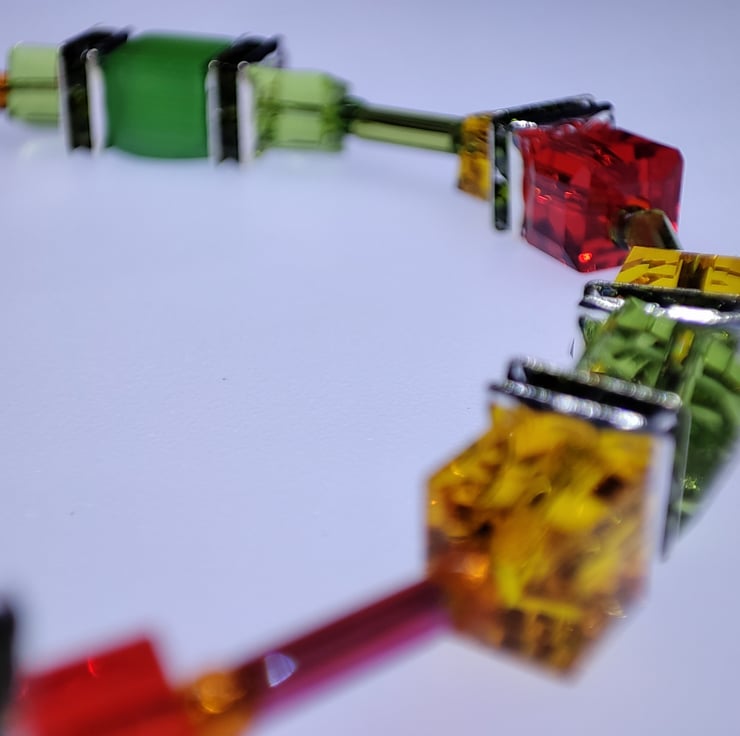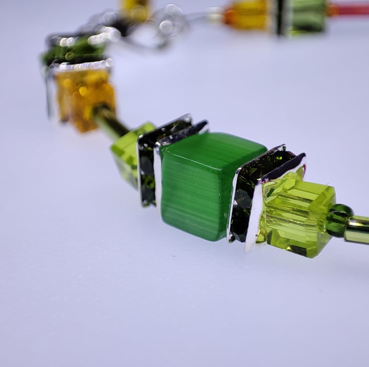 Handmade crystal and silver plated bracelet. I chose the colours of my favourite season, autumn, for this one. The mixture of yellows, oranges and reds when there are still some green leaves is so beautiful.