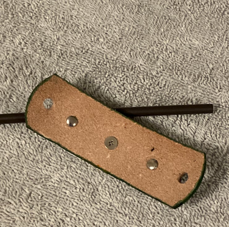Shape: Rectangle ... Size: 4” x 1 1/2" ... Hand dyed green // acrylic finishing spray to seal in leather dye