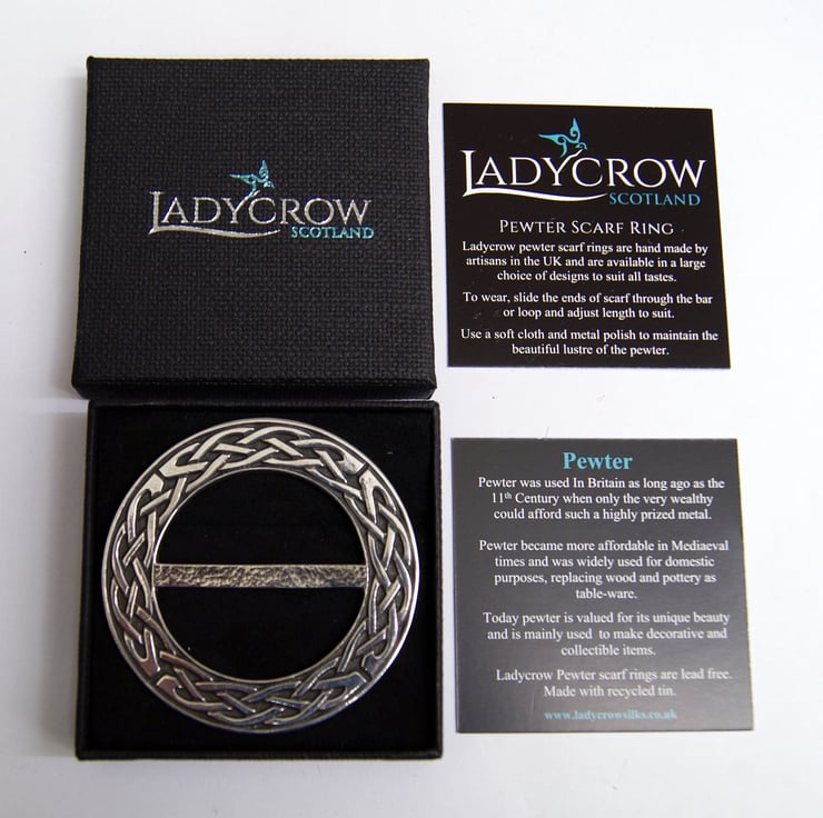 Celtic design scarf ring cast in Cornwall and hand polished in Scotland