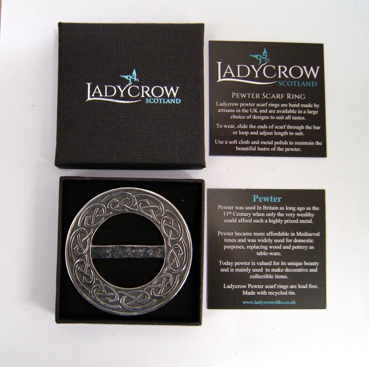 Celtic design scarf ring cast in Cornwall and hand polished in Scotland