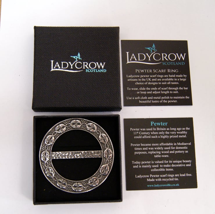 Celtic design scarf ring cast in Cornwall and hand polished in Scotland