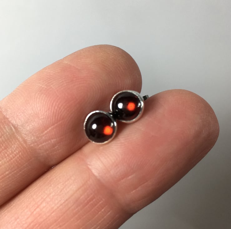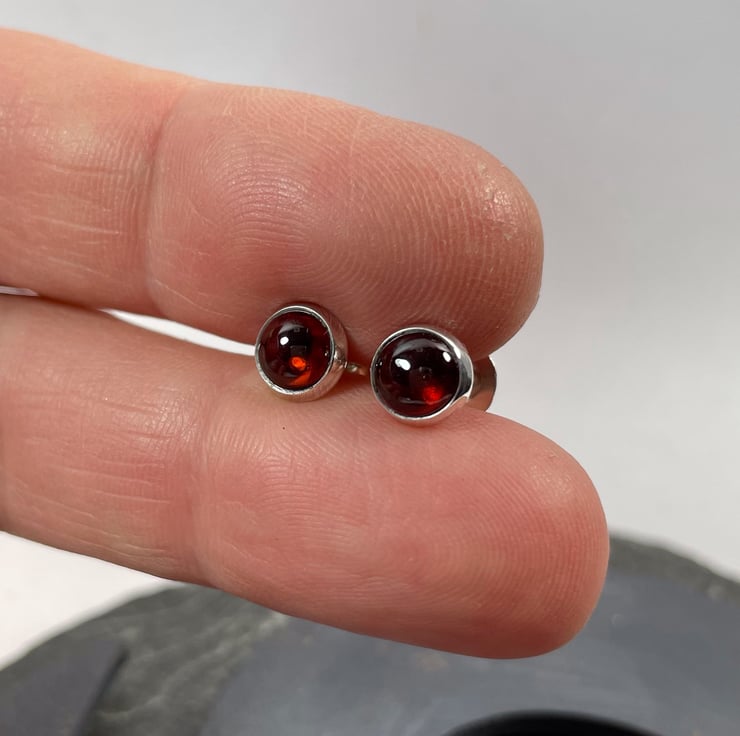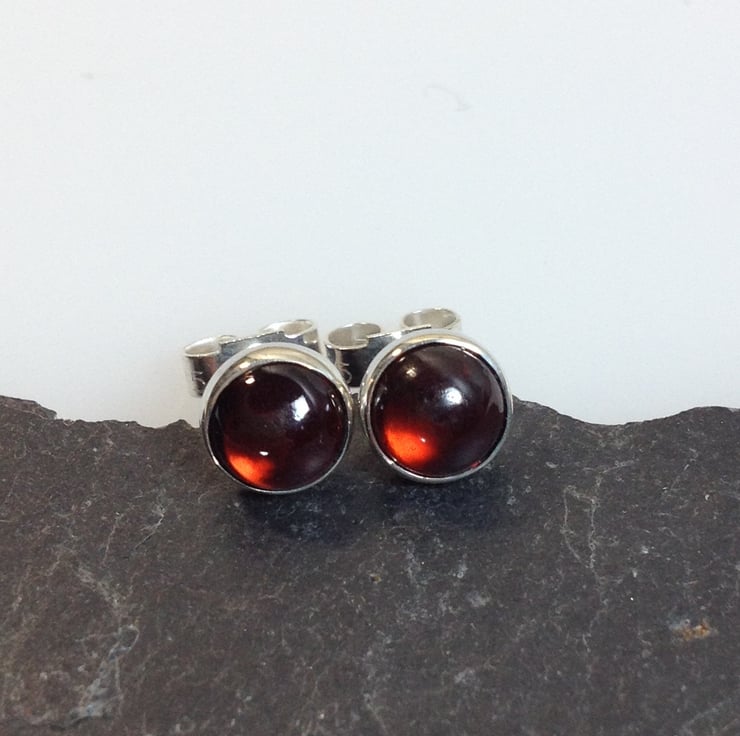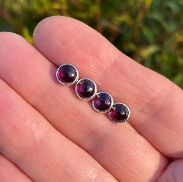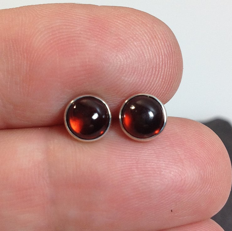 The garnet cabs measure 6mm diameter. the silver has been polished to a bright finish.