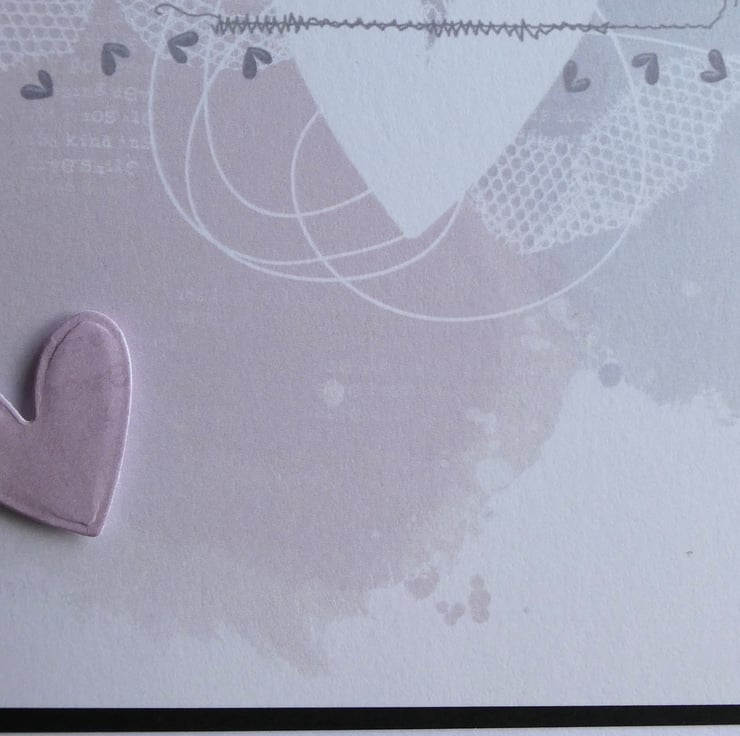 Coils of silver metallic thread have been looped under the message and a heart die cut from matching paper has been added towards the bottom left corner, again raised on foam pads.