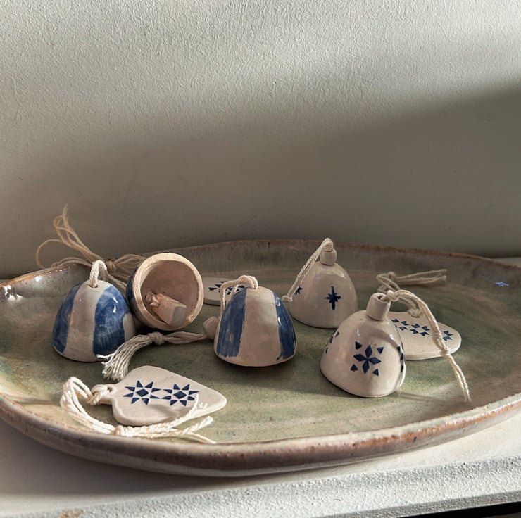 Each bell has slight variations in shape, size, and brushwork due to the handmade process