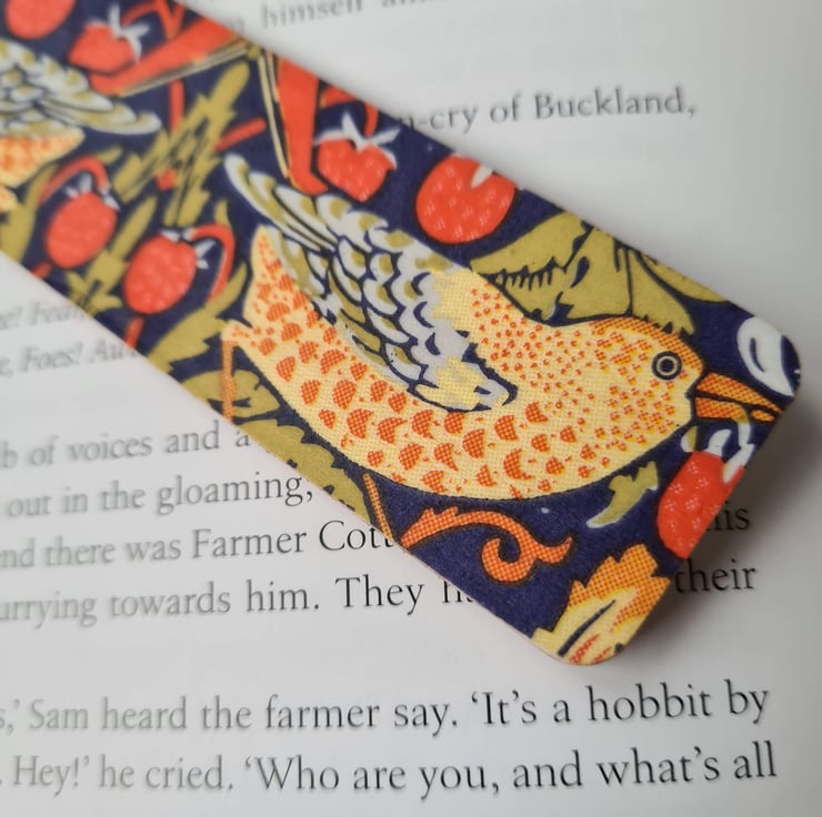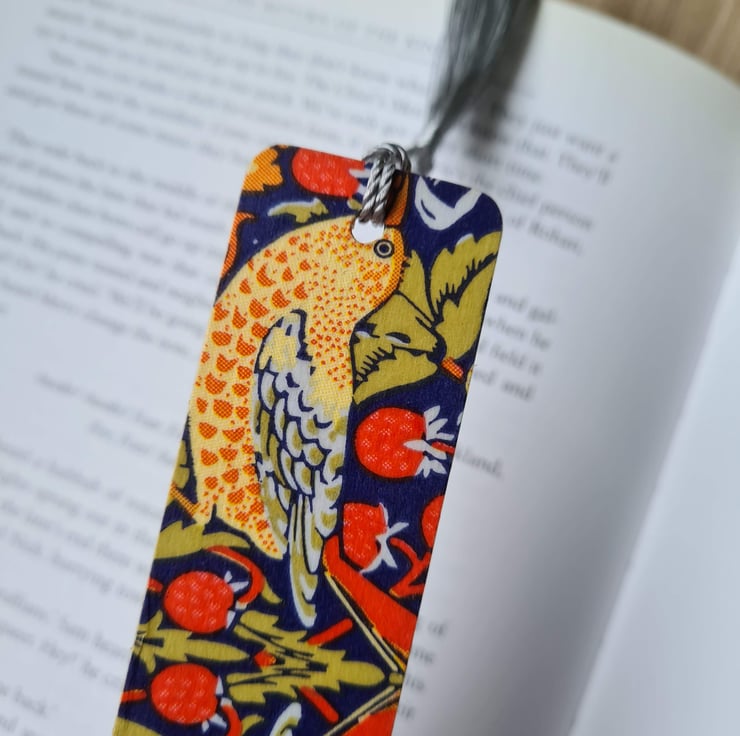 William Morris design bookmark decoupage Strawberry Thief design with tassel