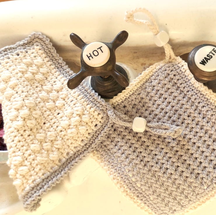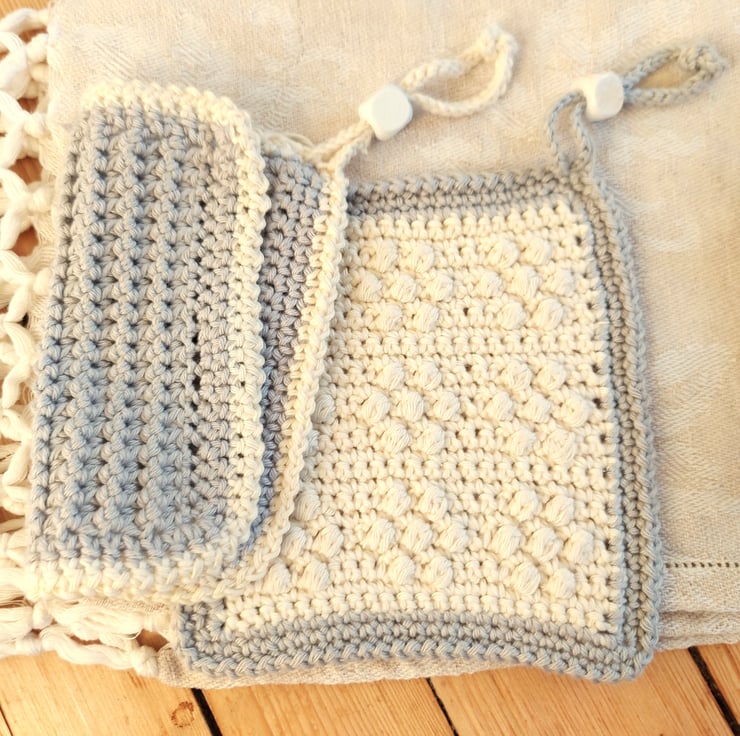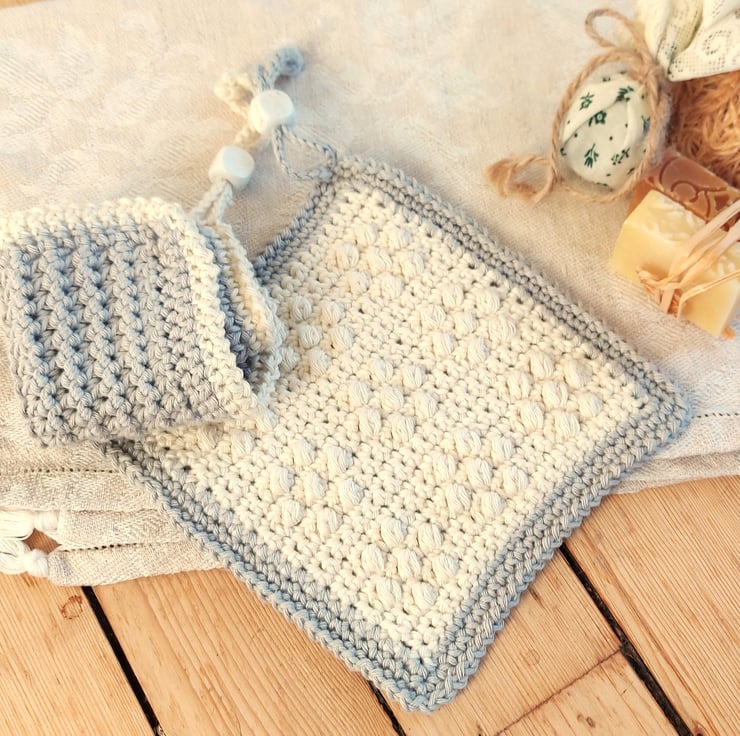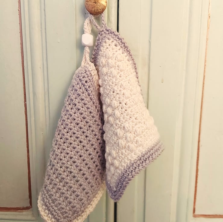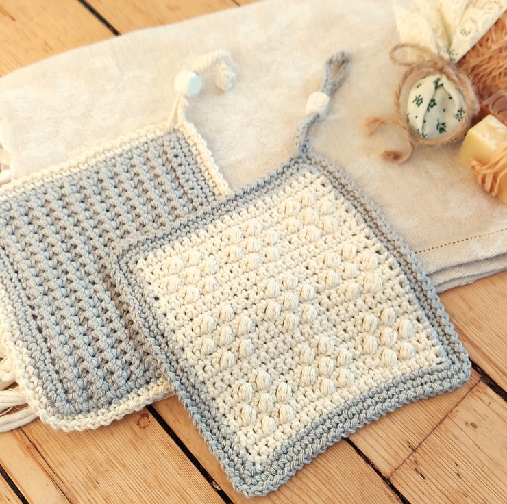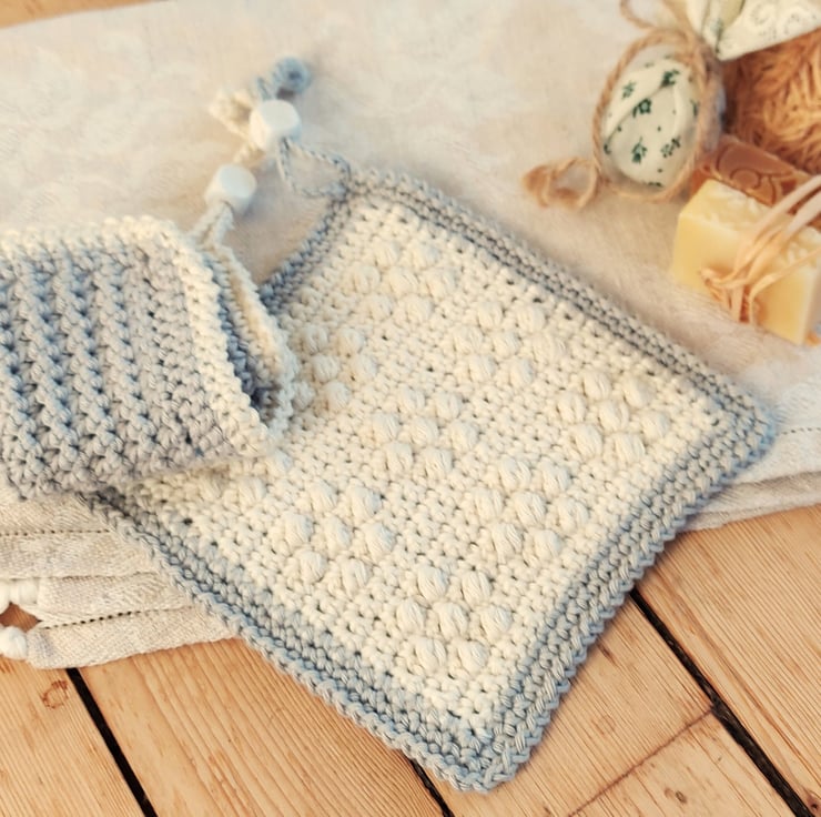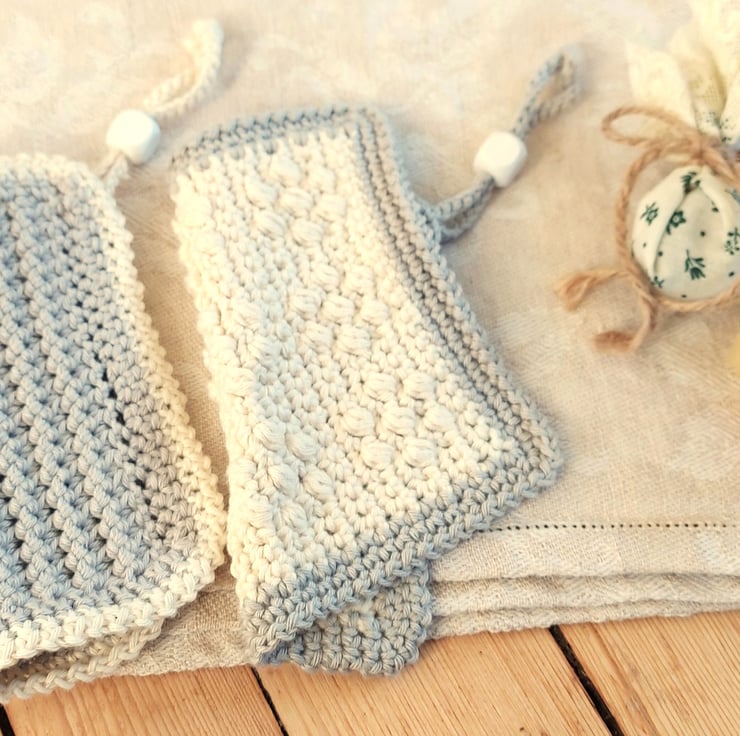 I carefully handmade these cloths using different stitches to give a soft texture for washing or gentle scrubbing, and one has a lovely flower pattern for extra cuteness.