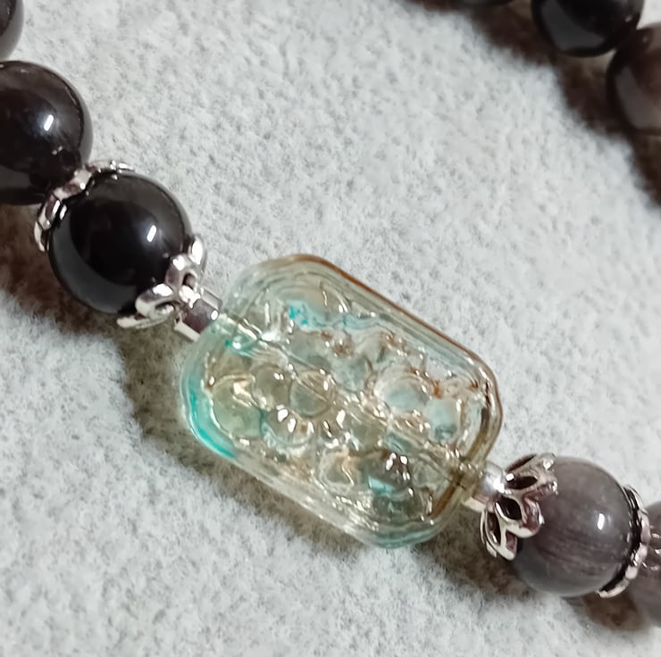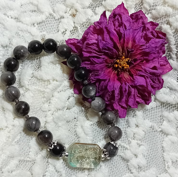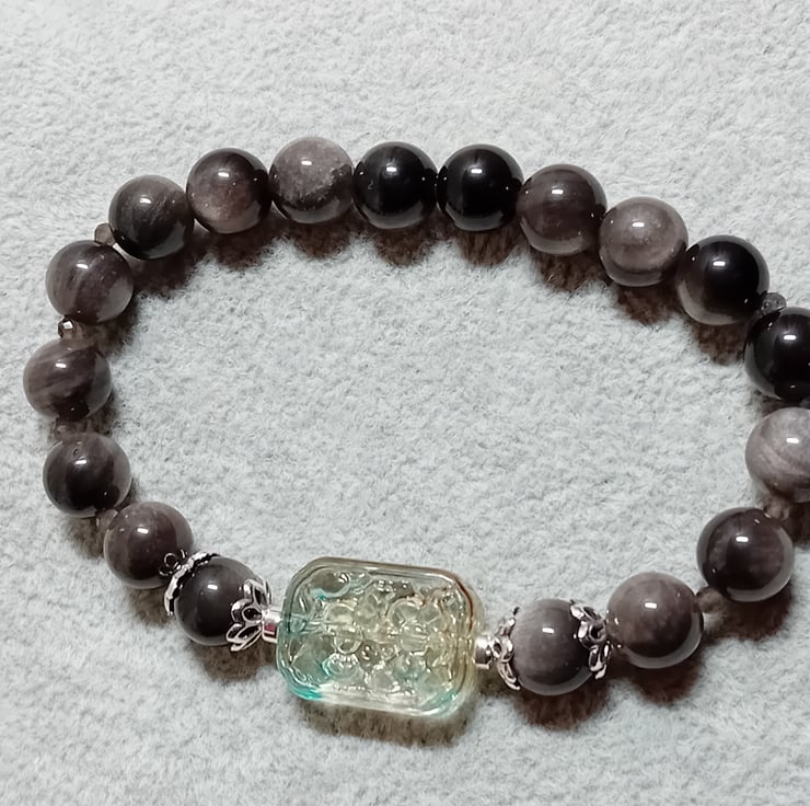 Obsidian Silver Sheen and Glass Bracelet